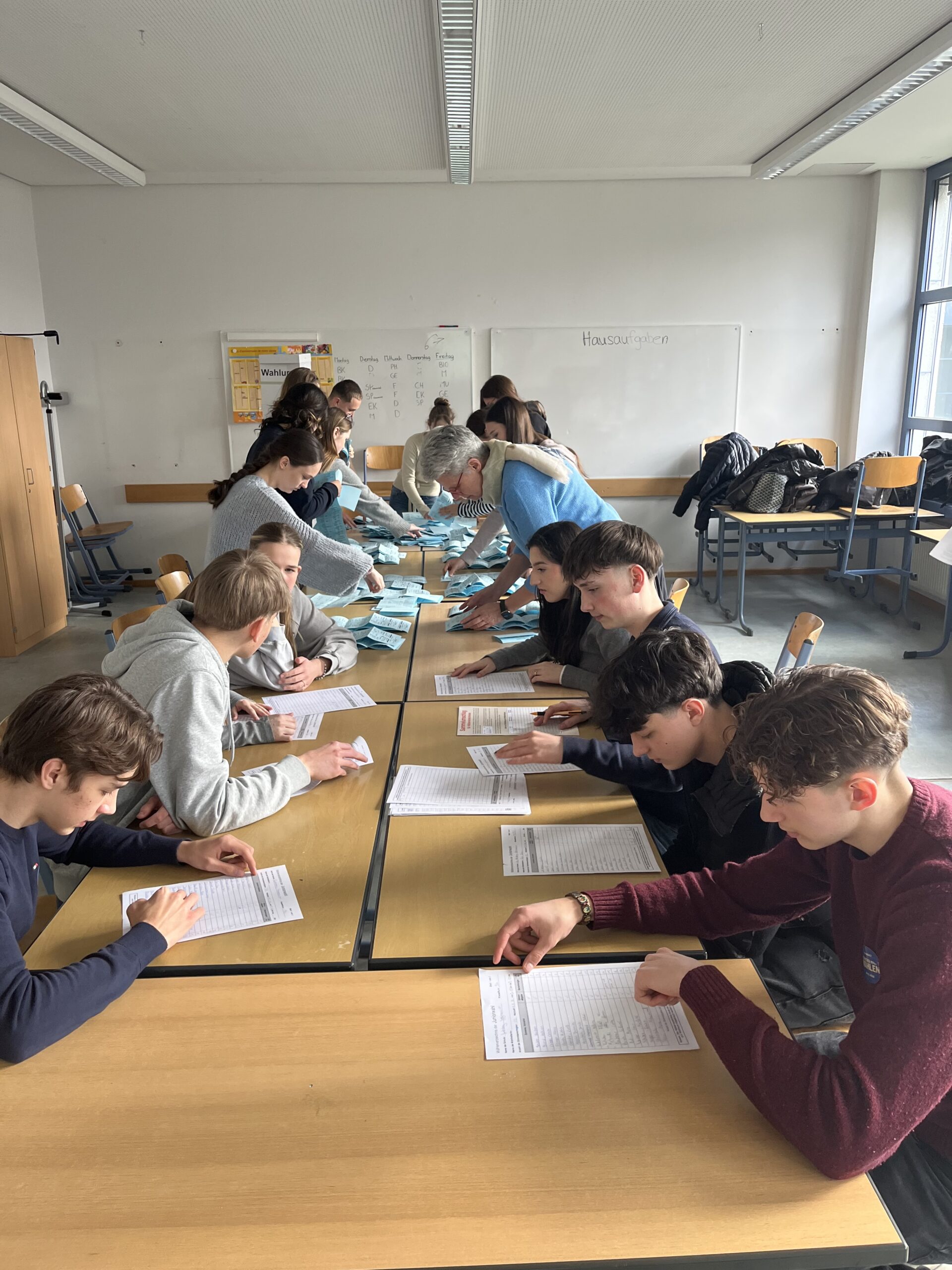 Der Sozialkunde Leistungskurs der Jahrgangstufe 11 beim Auszählen: